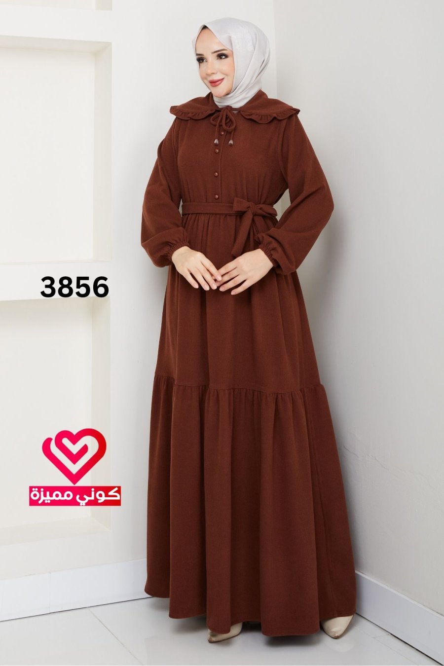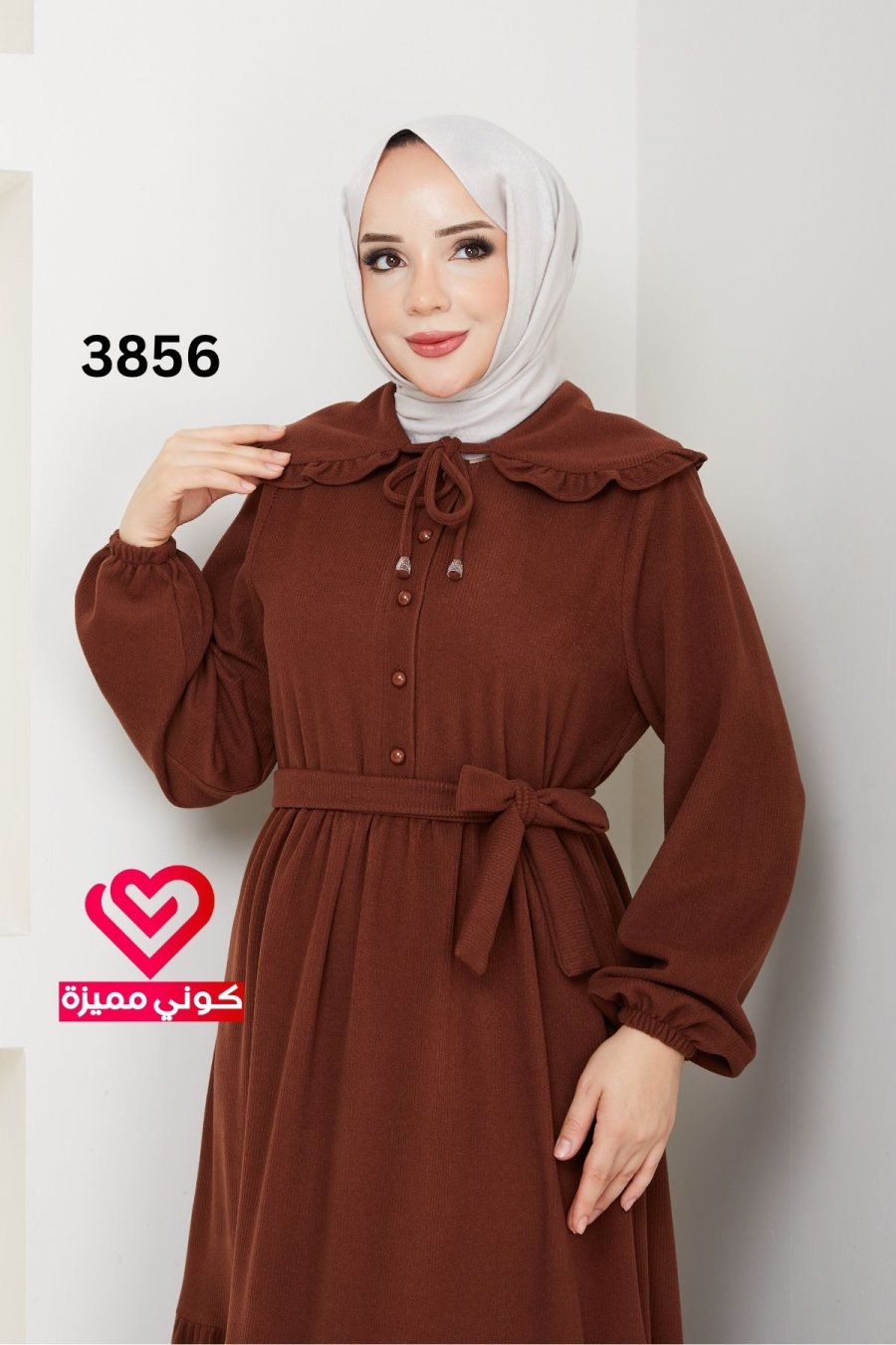 فستان خريفي شتوي 3856 بني