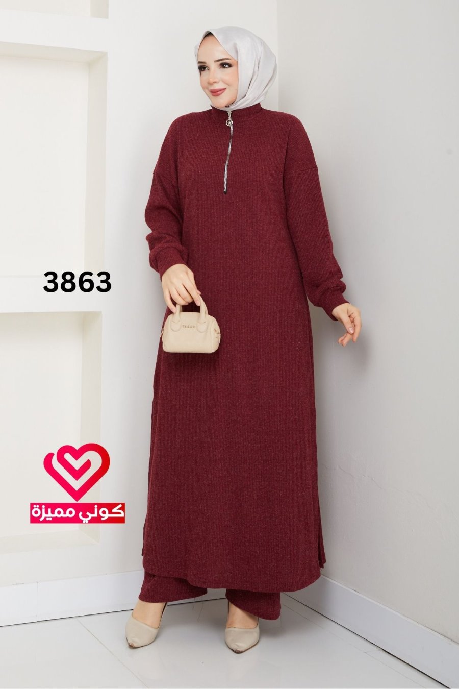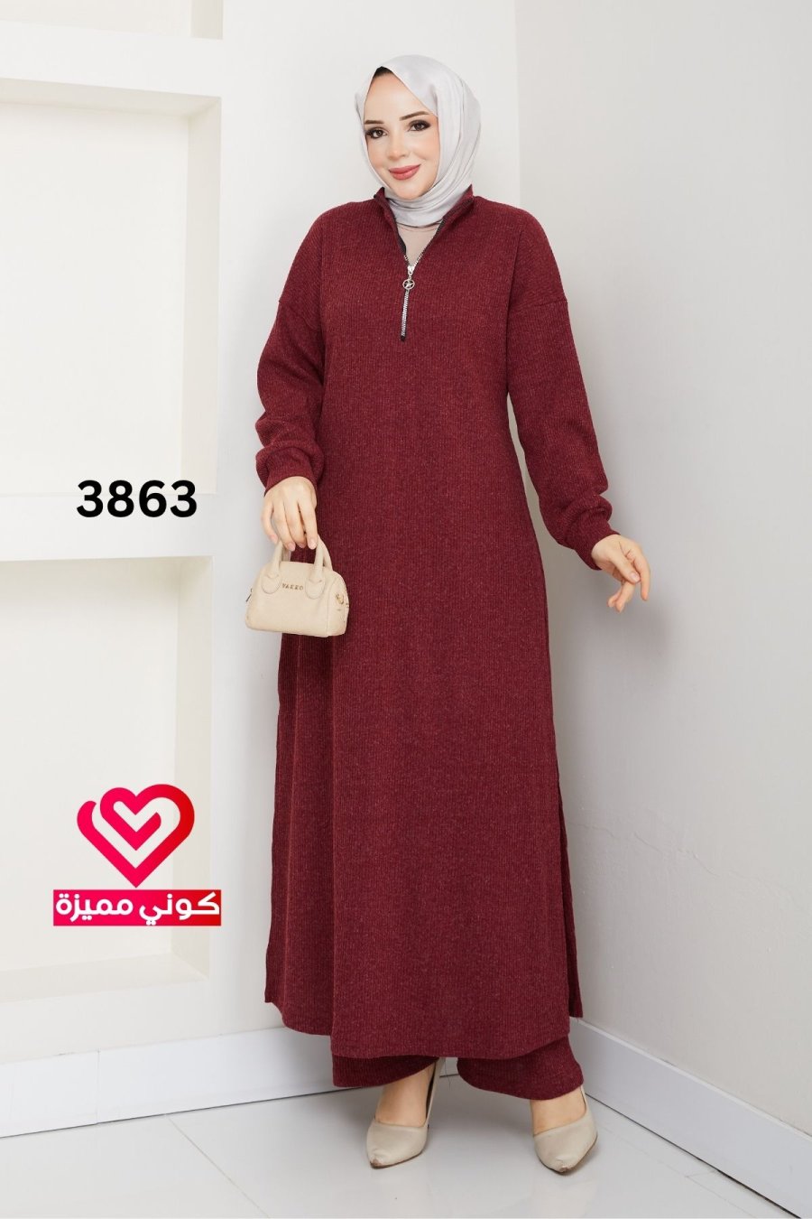 طقم خريفي شتوي 3863 خمري