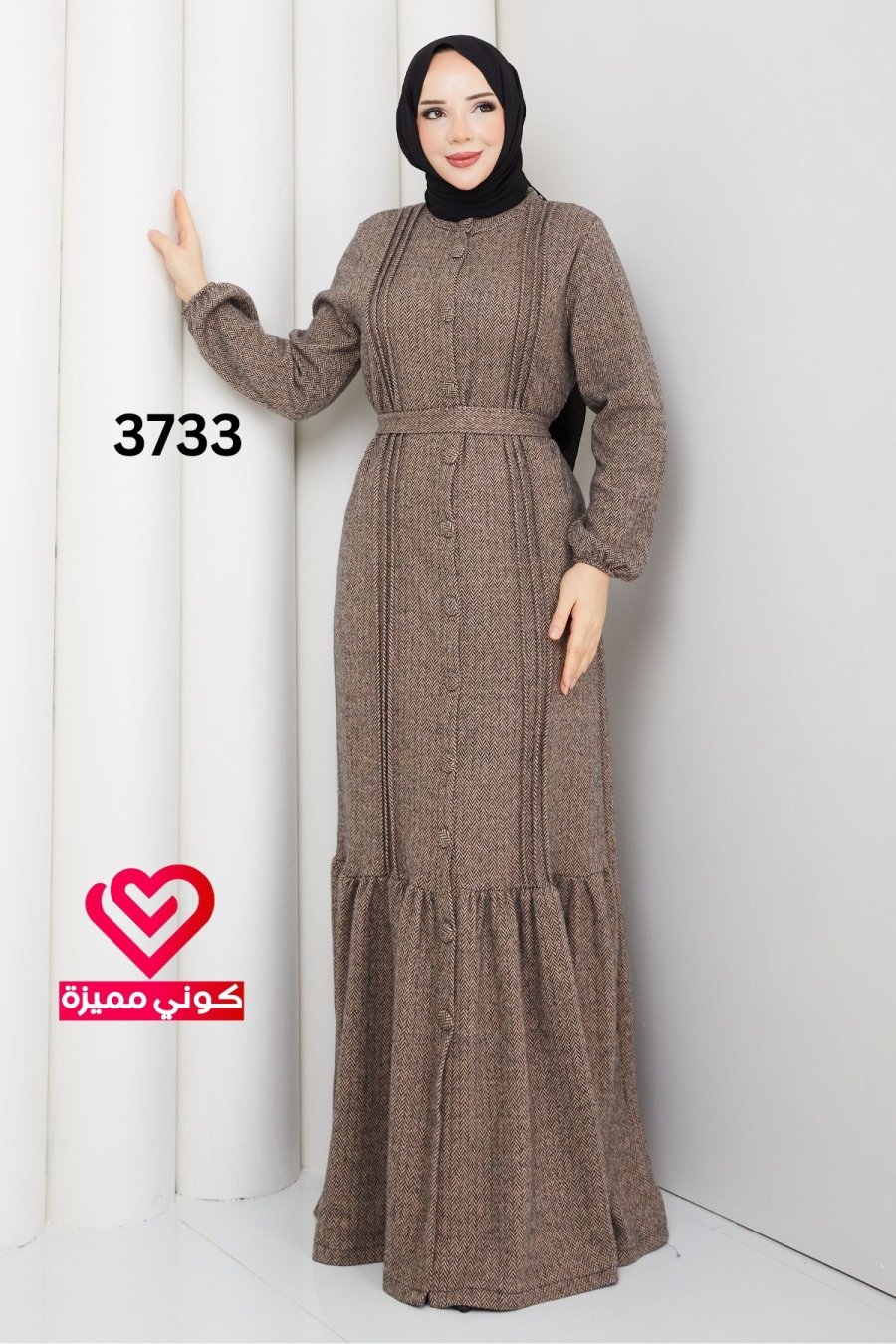 فستان شتوي 3733 بيج
