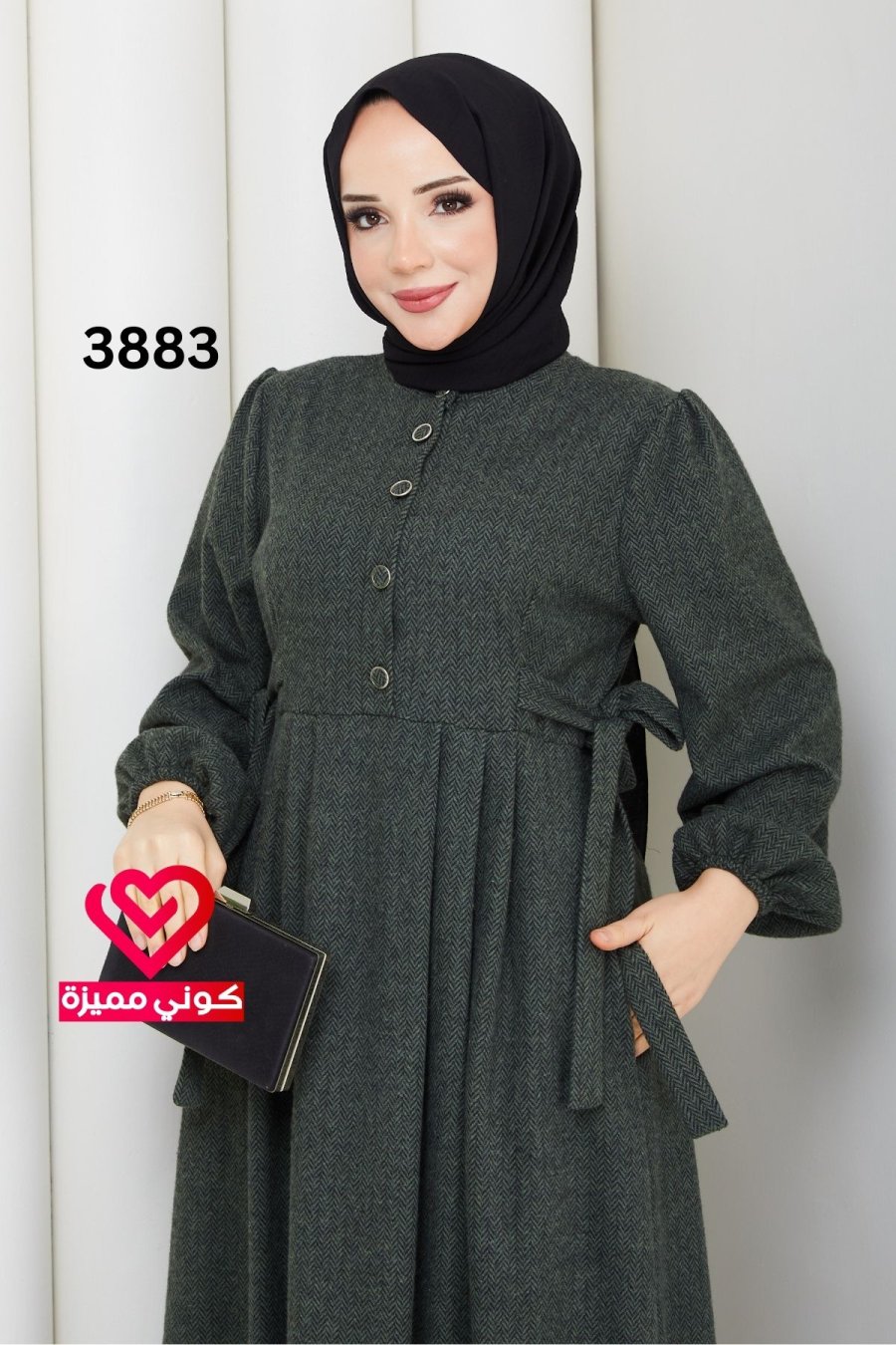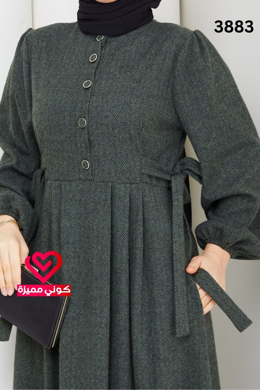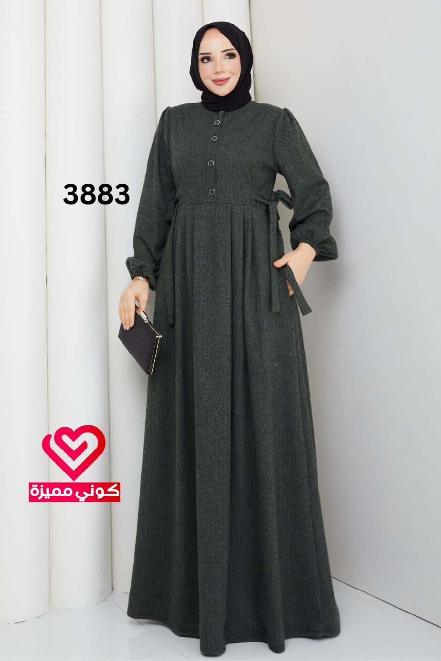 فستان ربيعي 3883 زيتي